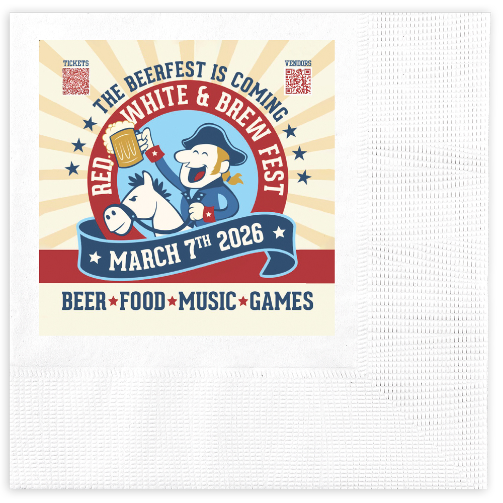 Make a strong first and lasting impression with personalized napkins and coasters printed with your logo or message. Custom restaurant and bar napkins are an easy way to highlight menus, hours, promotions, and events while keeping your brand visible on tables, bars, counters, and restrooms.